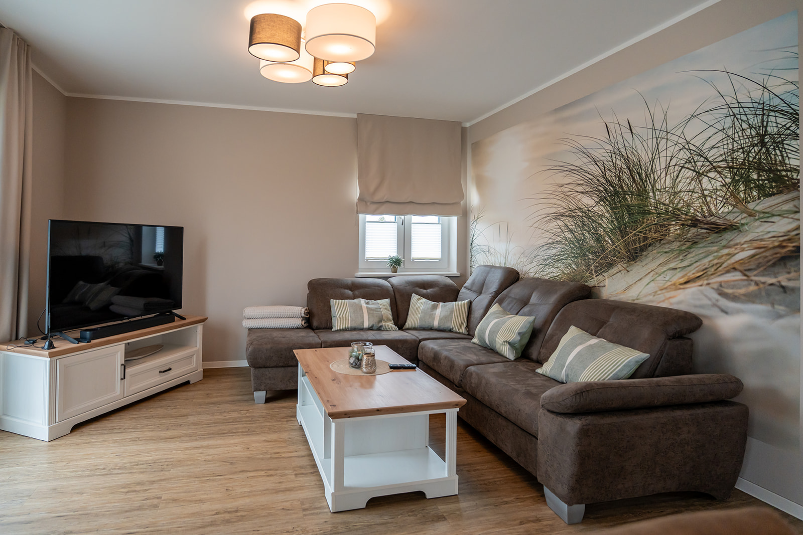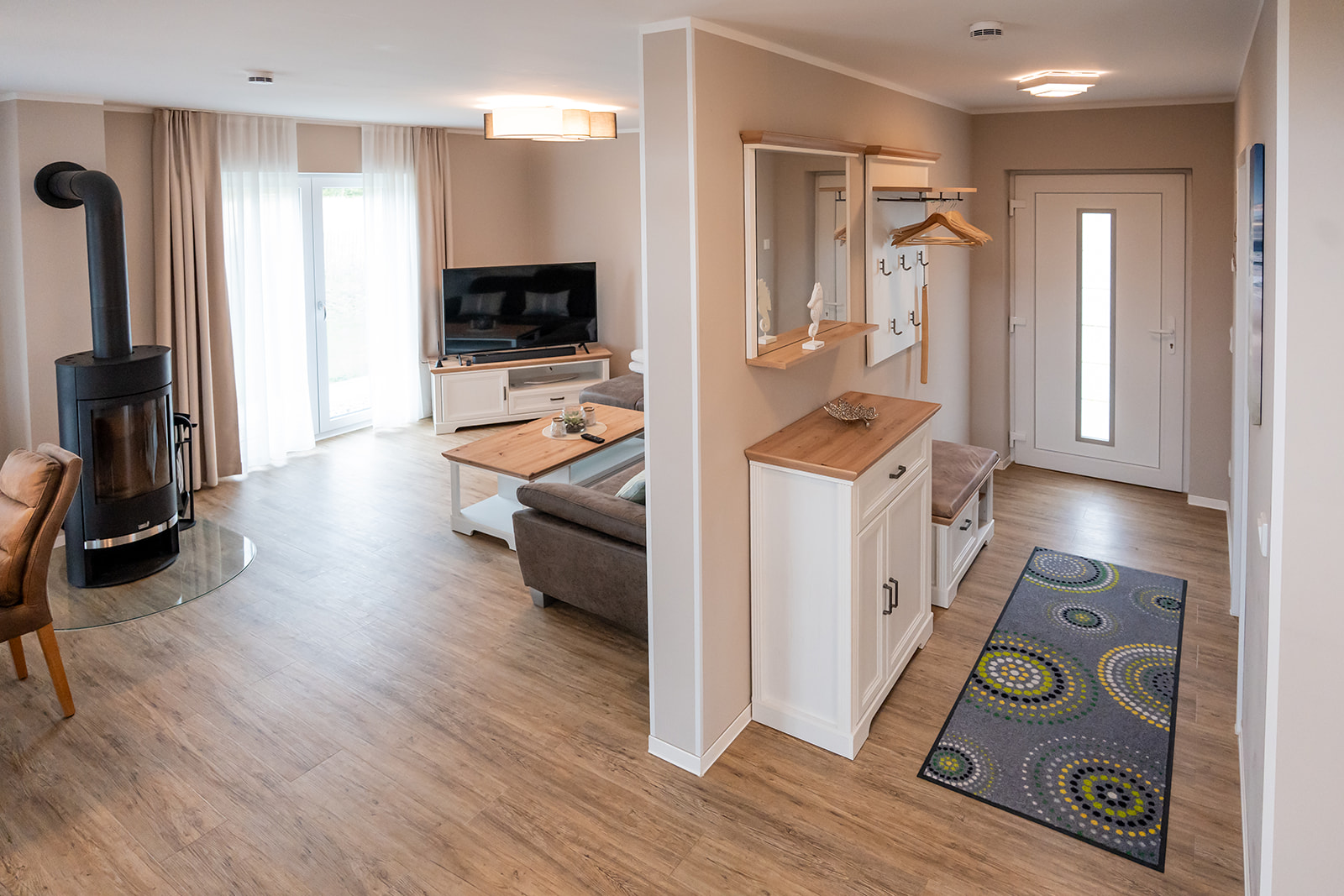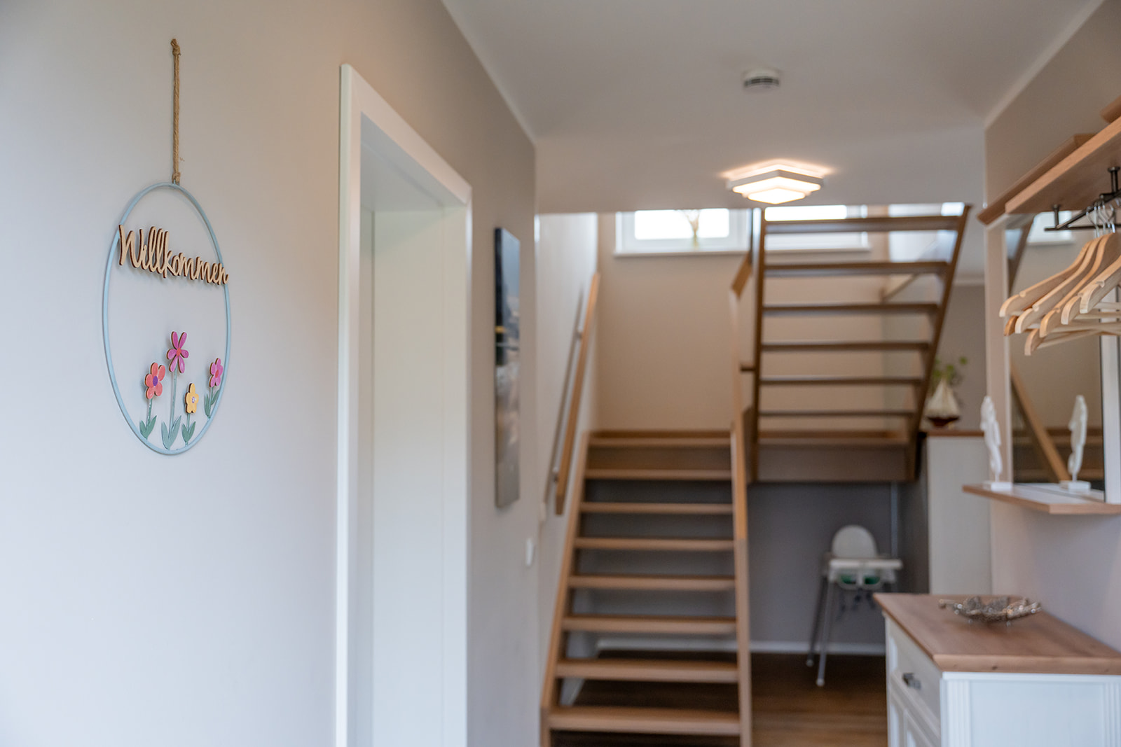 Die gesamte Einrichtung des Ferienhauses ist in hellen, freundlichen Farben gehalten. Dies schafft eine einladende Atmosphäre, die Sie vom ersten Moment an willkommen heißt und dafür sorgt, dass Sie sich wie zu Hause fühlen.