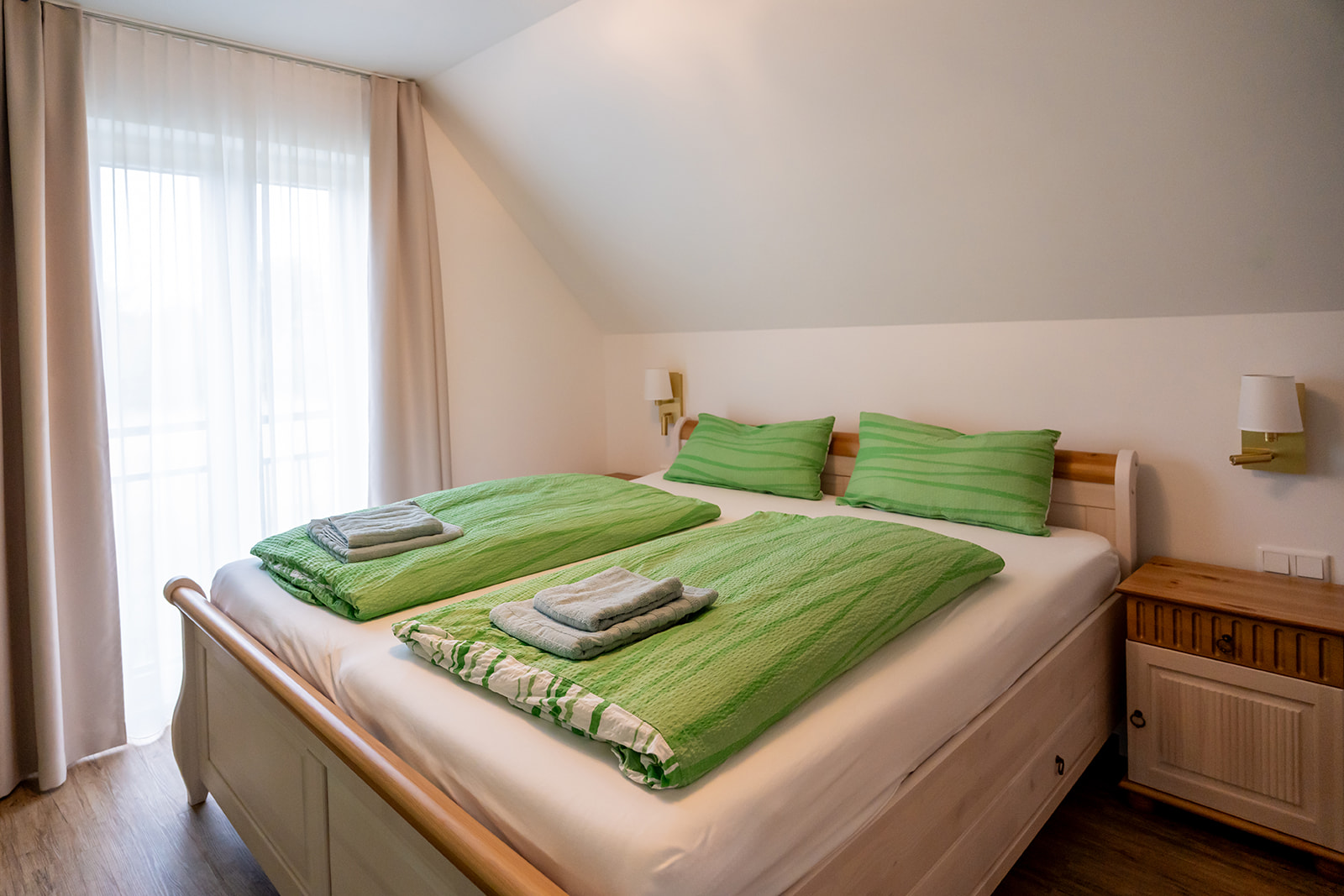 - Zwei Doppelbetten (1,80 x 2,00 m)