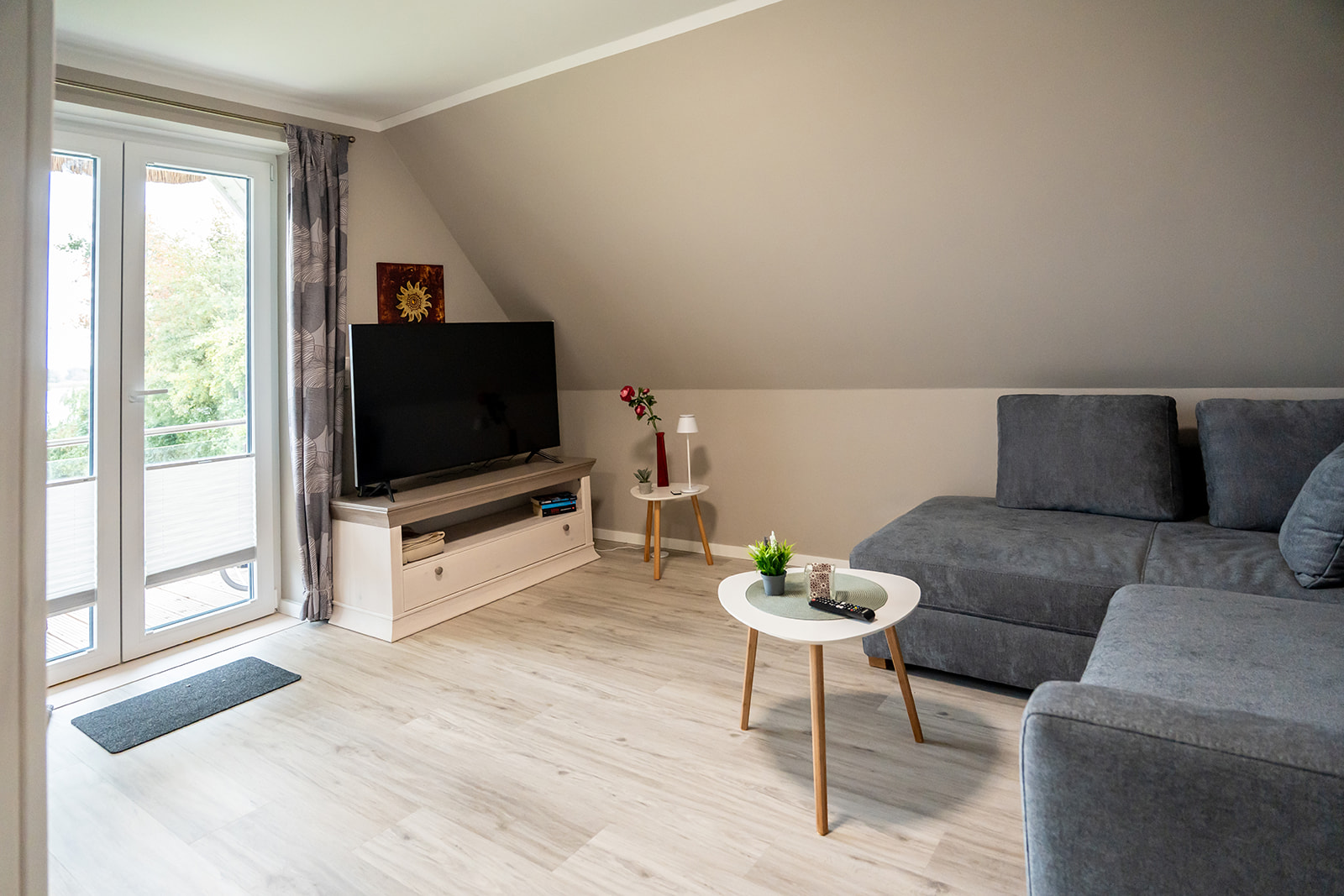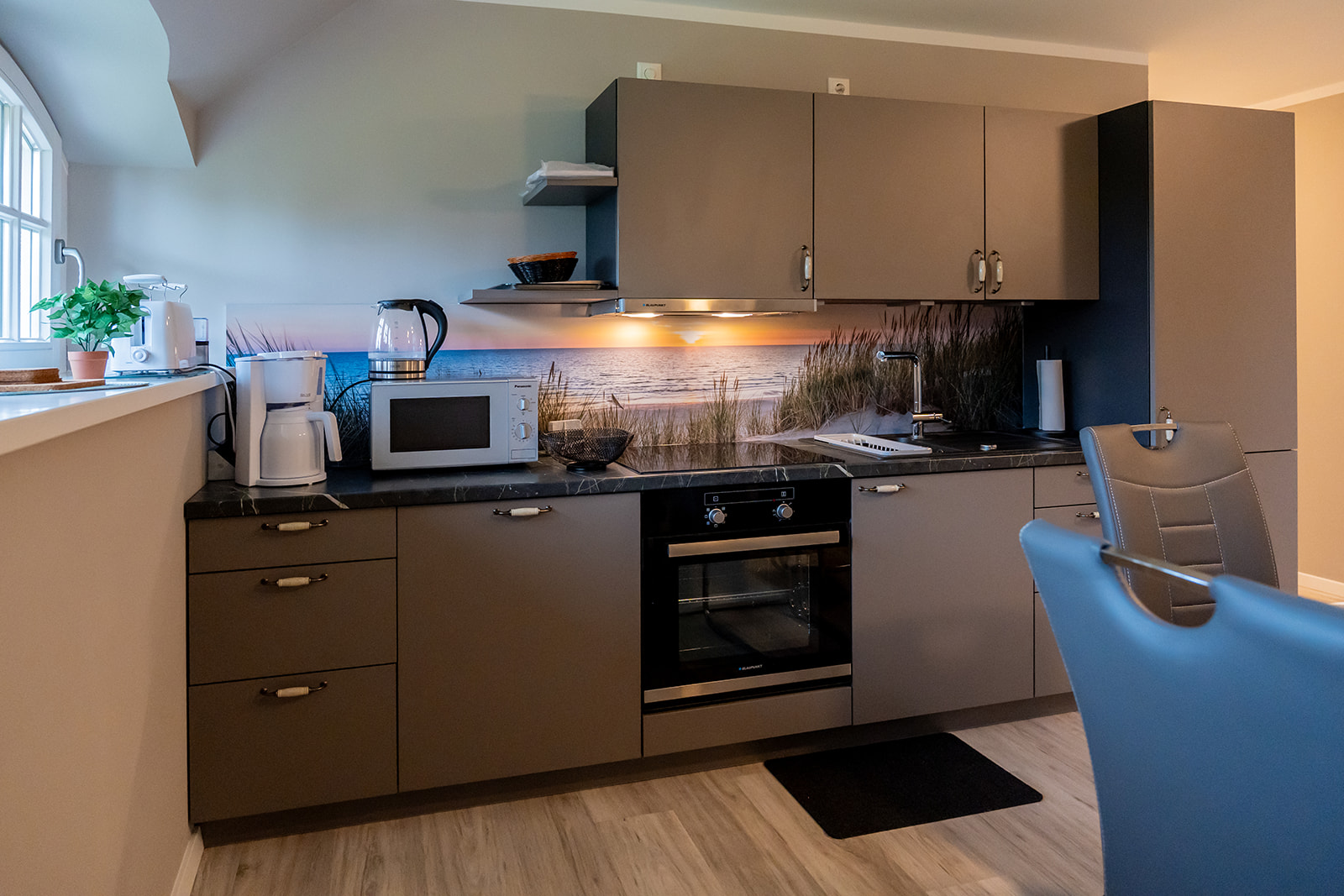 Ein echtes Highlight ist der Balkon mit traumhaftem Blick auf den Puddeminer Wiek – perfekt für ein Frühstück in der Morgensonne oder ein Glas Wein am Abend.